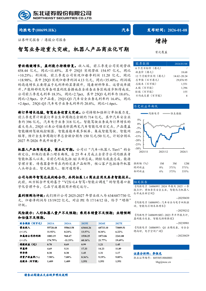 均胜电子:东北证券-均胜电子-0699.HK-智驾业务迎重大突破,机器人产品商业化可期-260108