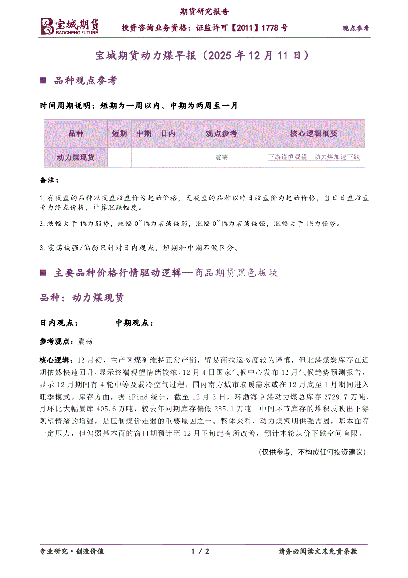 宝城期货-动力煤早报-251211