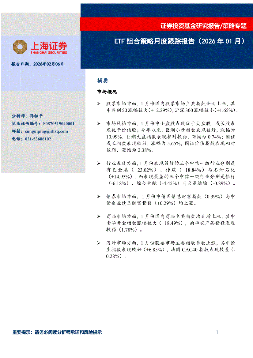 上海证券-ETF组合策略月度跟踪报告(2026年1月)-260206