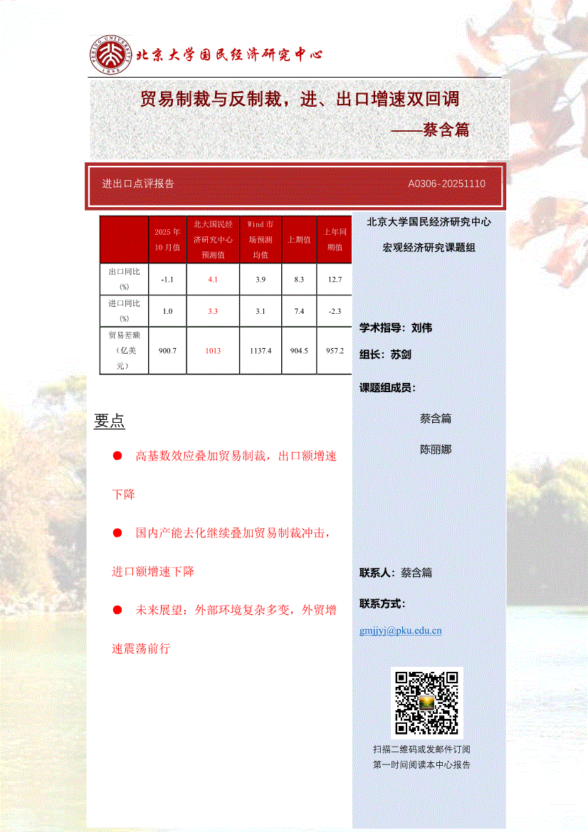 北京大学国民经济研究中心-贸易制裁与反制裁,进、出口增速双回调-251110