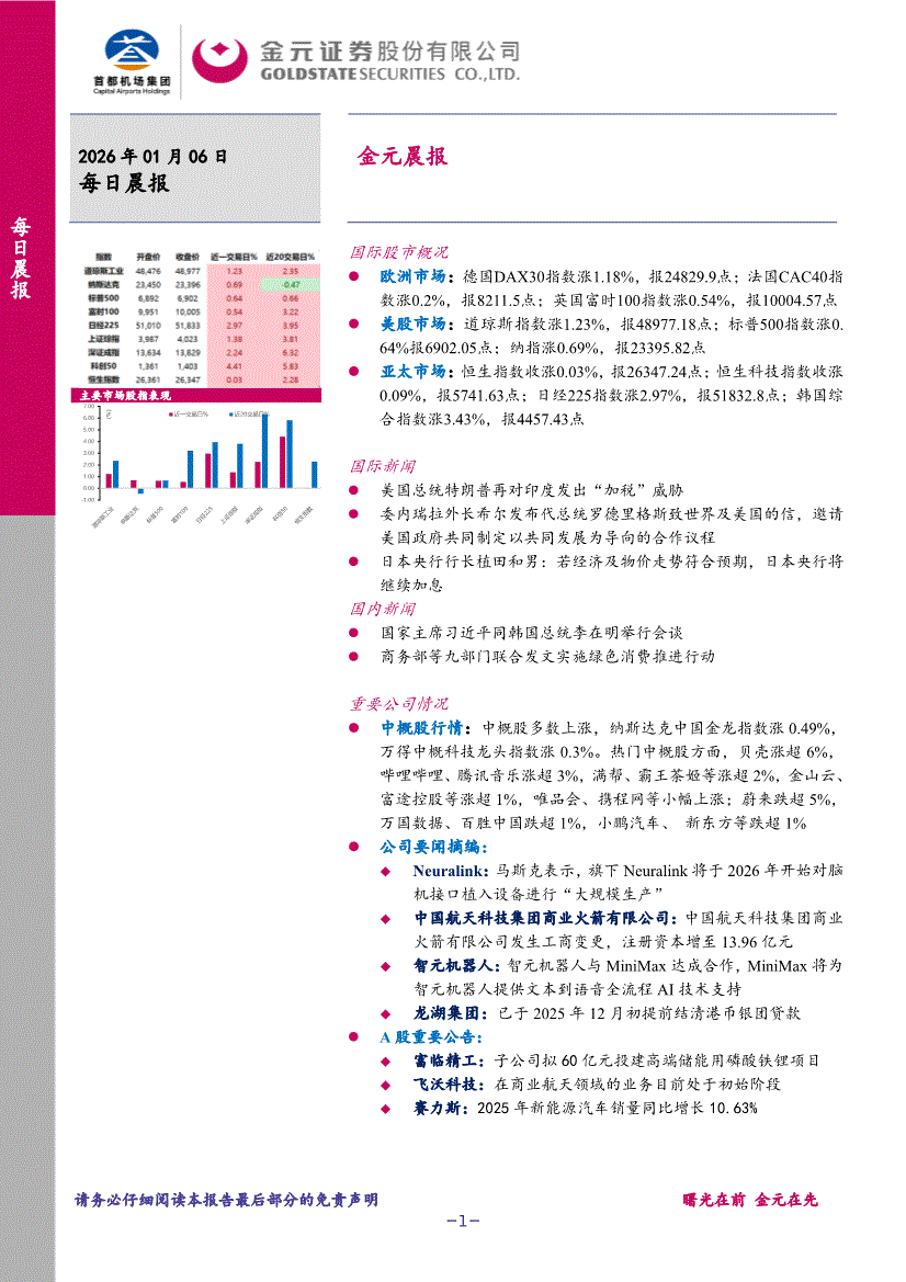 金元证券-晨报-260106