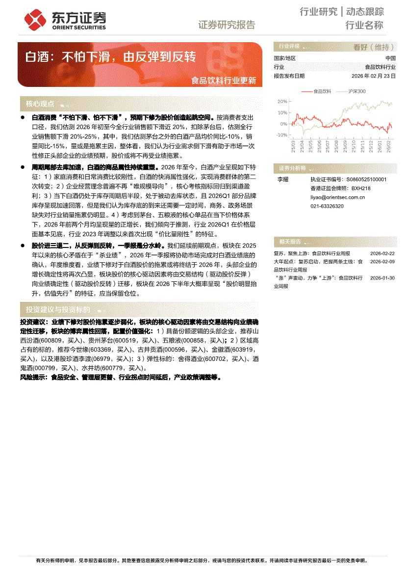 食品饮料行业:东方证券-食品饮料行业更新:白酒,不怕下滑,由反弹到反转-260223