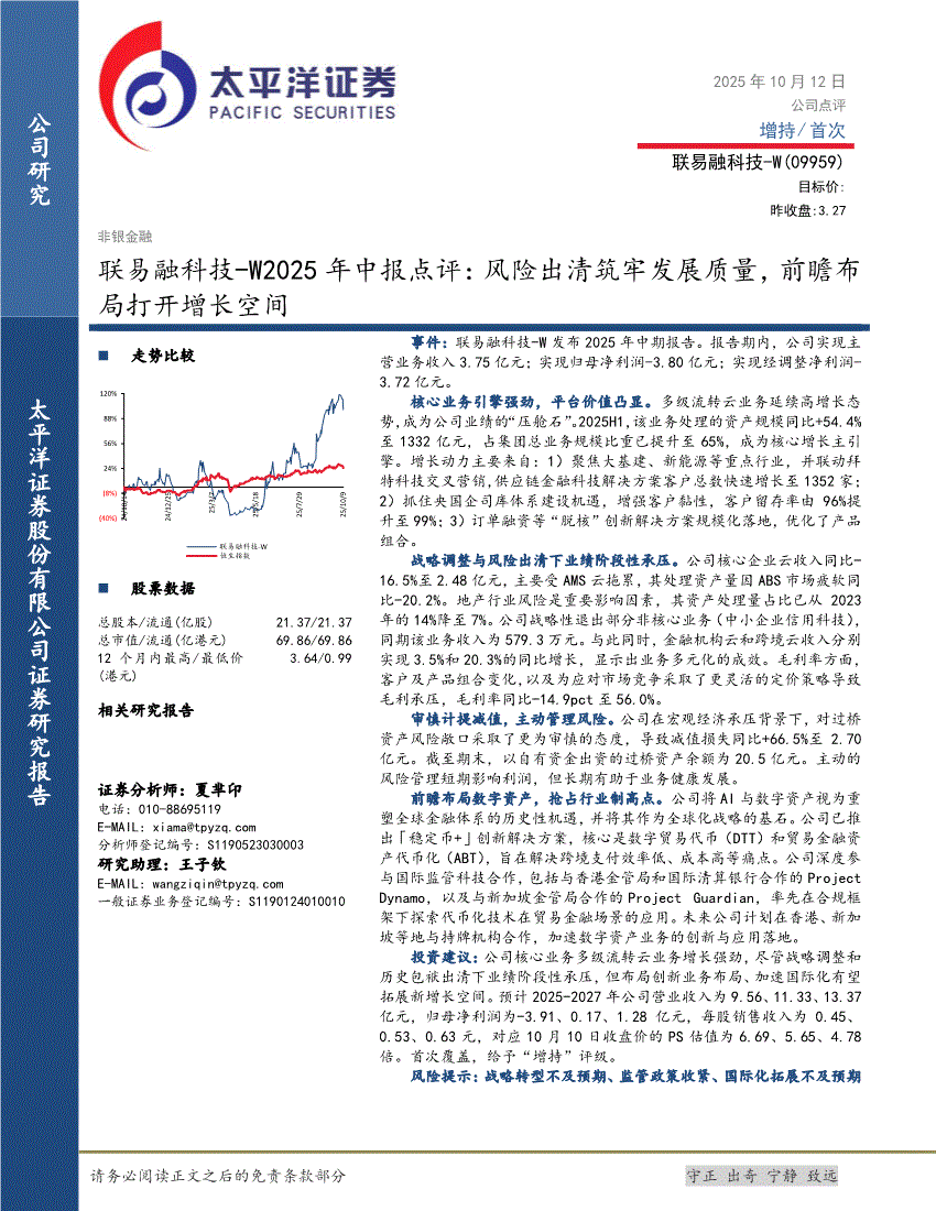 联易融科技~W:太平洋证券-联易融科技~W-9959.HK-2025年中报点评:风险出清筑牢发展质量,前瞻布局打开增长空间-251012