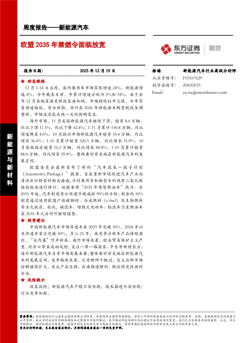 东证期货-周度报告——新能源汽车:欧盟2035年禁燃令面临放宽-251219