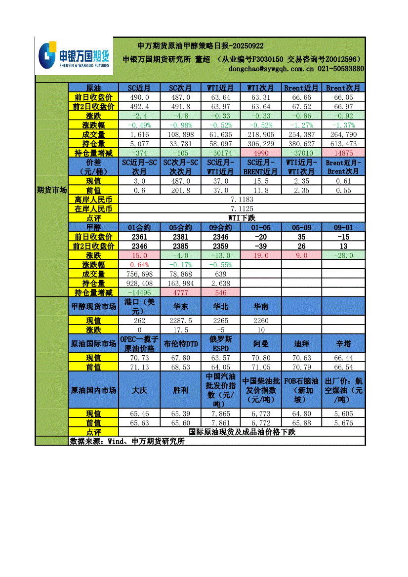 申银万国期货-原油甲醇策略日报-250922