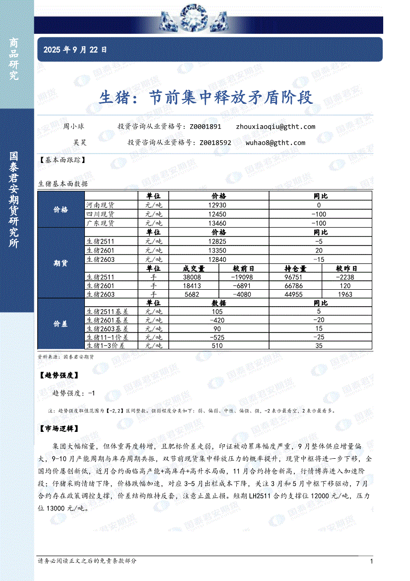 国泰君安期货-生猪:节前集中释放矛盾阶段-250922