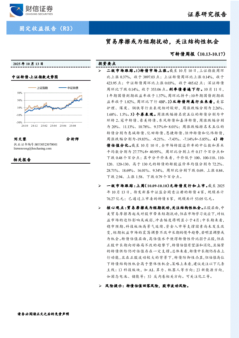 财信证券-可转债周报:贸易摩擦或为短期扰动,关注结构性机会-251013