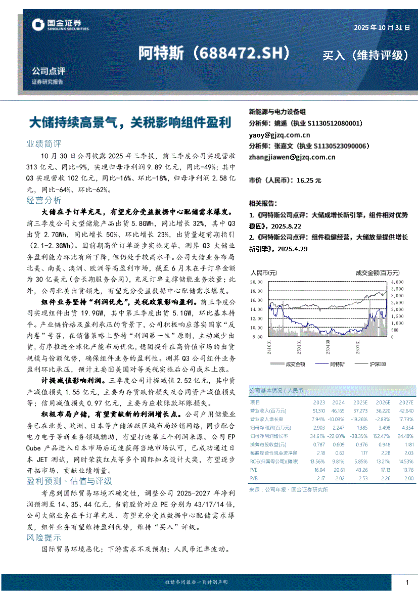 阿特斯:国金证券-阿特斯-688472-大储持续高景气,关税影响组件盈利-251031