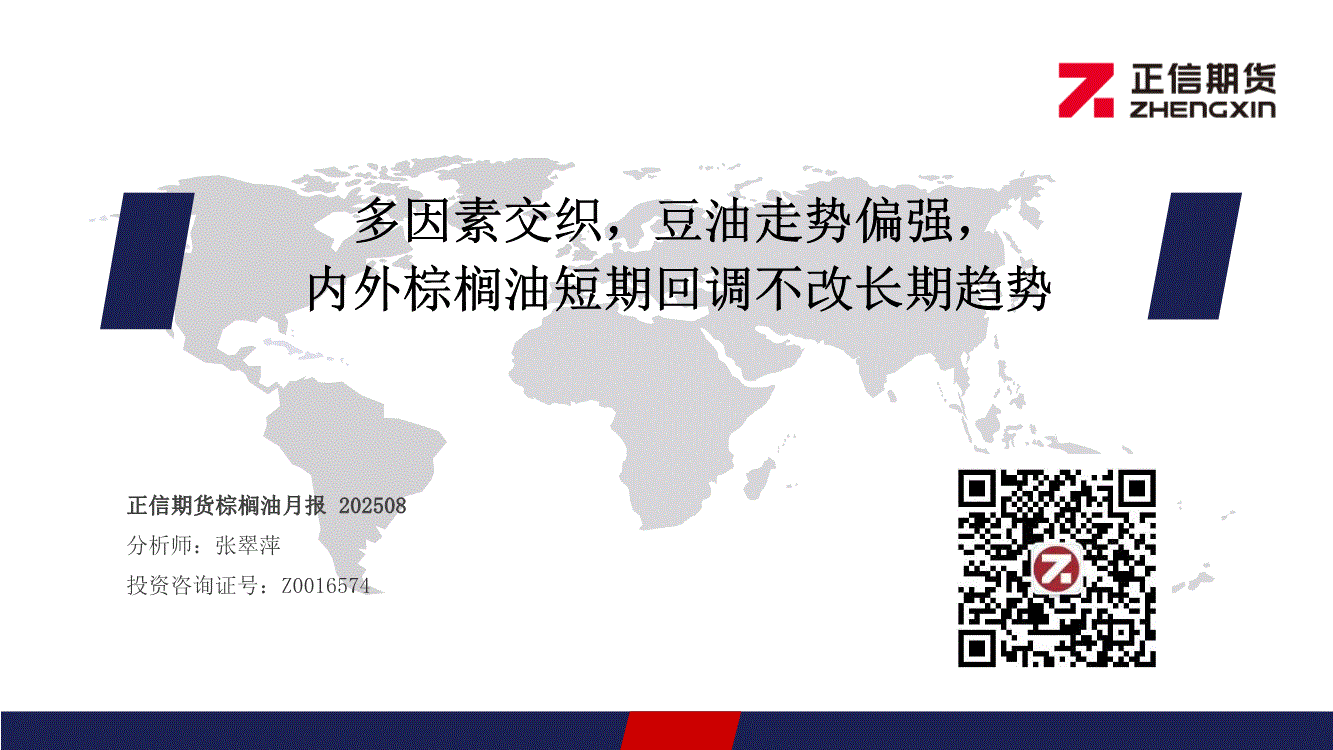 正信期货-棕榈油月报:多因素交织,豆油走势偏强,内外棕榈油短期回调不改长期趋势-250804