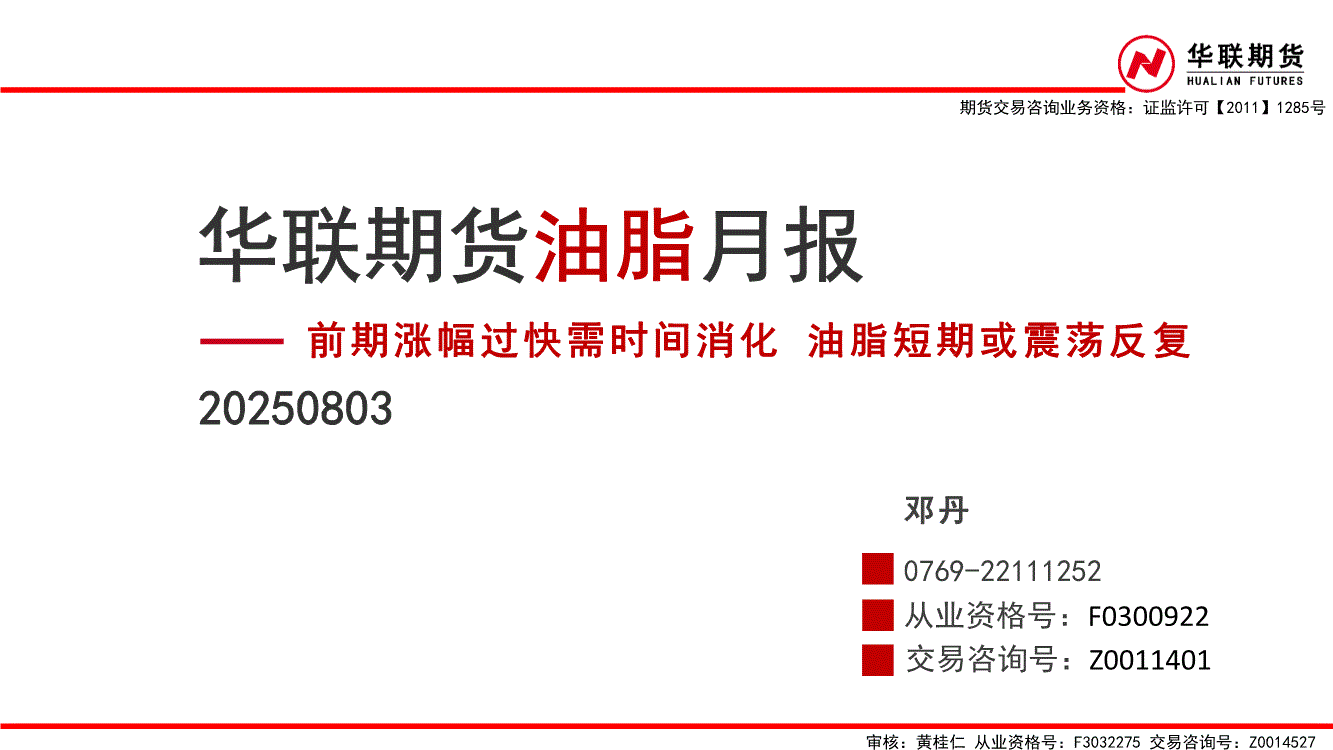 华联期货-油脂月报:前期涨幅过快需时间消化 油脂短期或震荡反复-250803