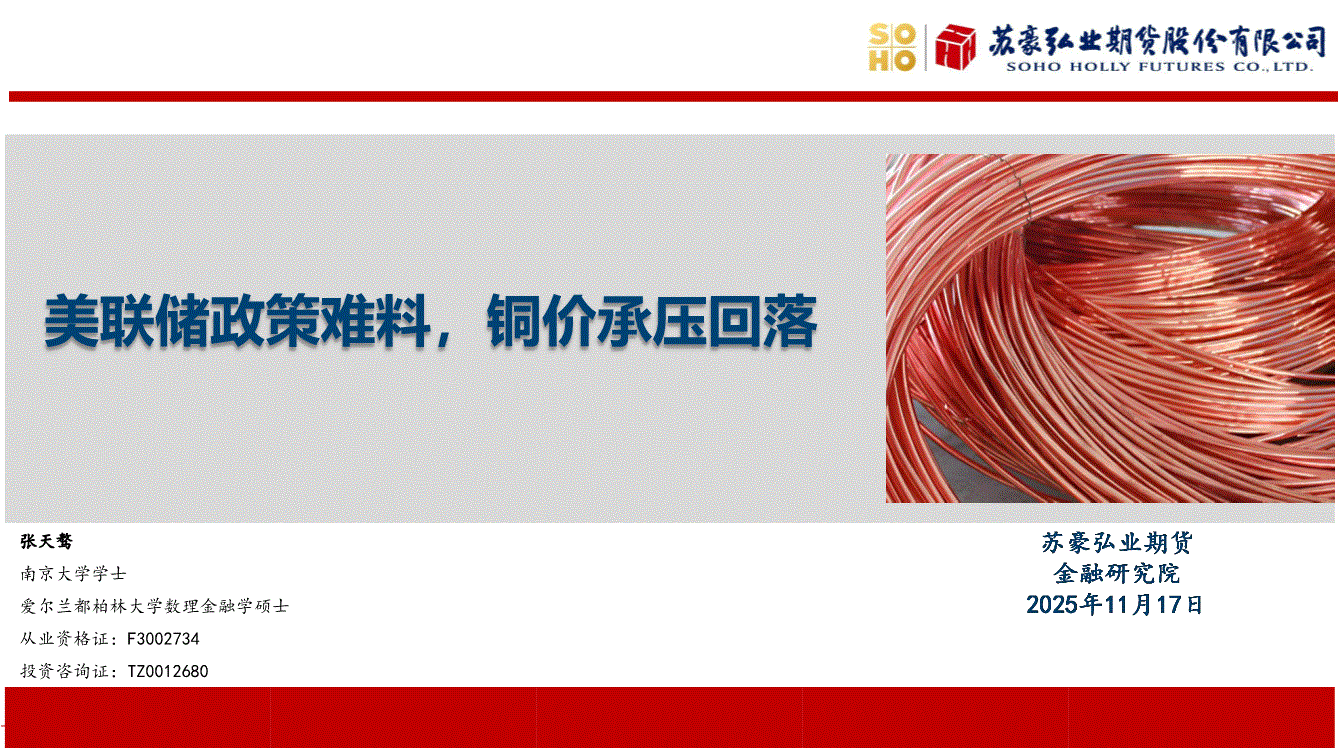 弘业期货-美联储政策难料,铜价承压回落-251117