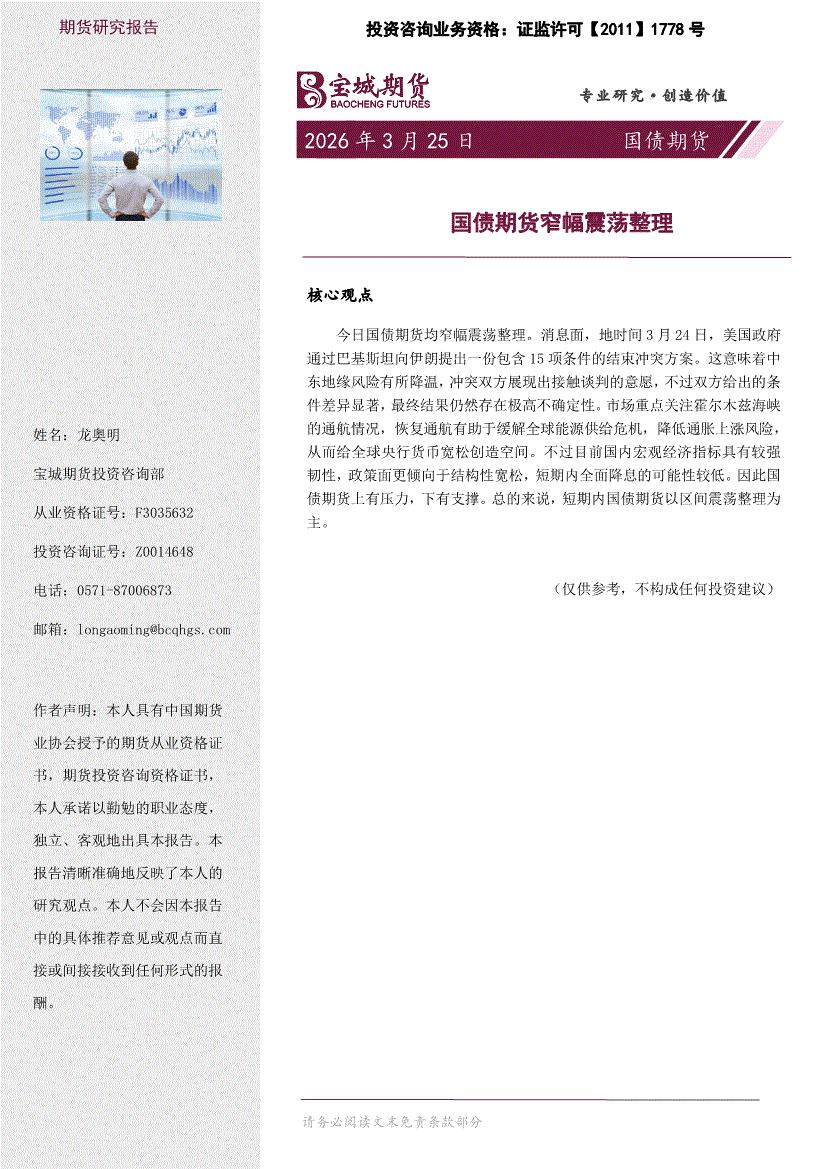 宝城期货-国债期货日报:国债期货窄幅震荡整理-260325