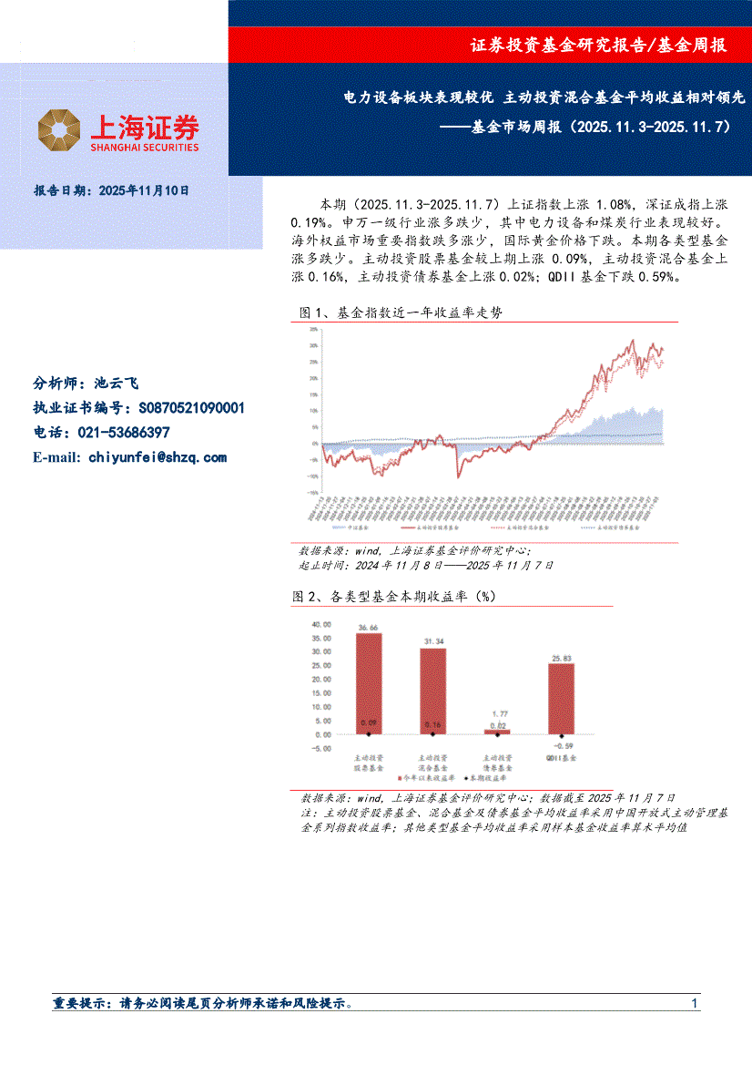 上海证券-基金市场周报:电力设备板块表现较优,主动投资混合基金平均收益相对领先-251110