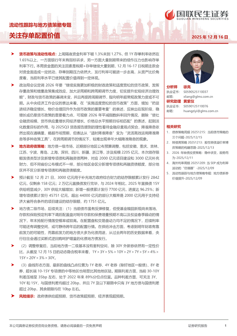 国联民生证券-流动性跟踪与地方债策略专题:关注存单配置价值-251216