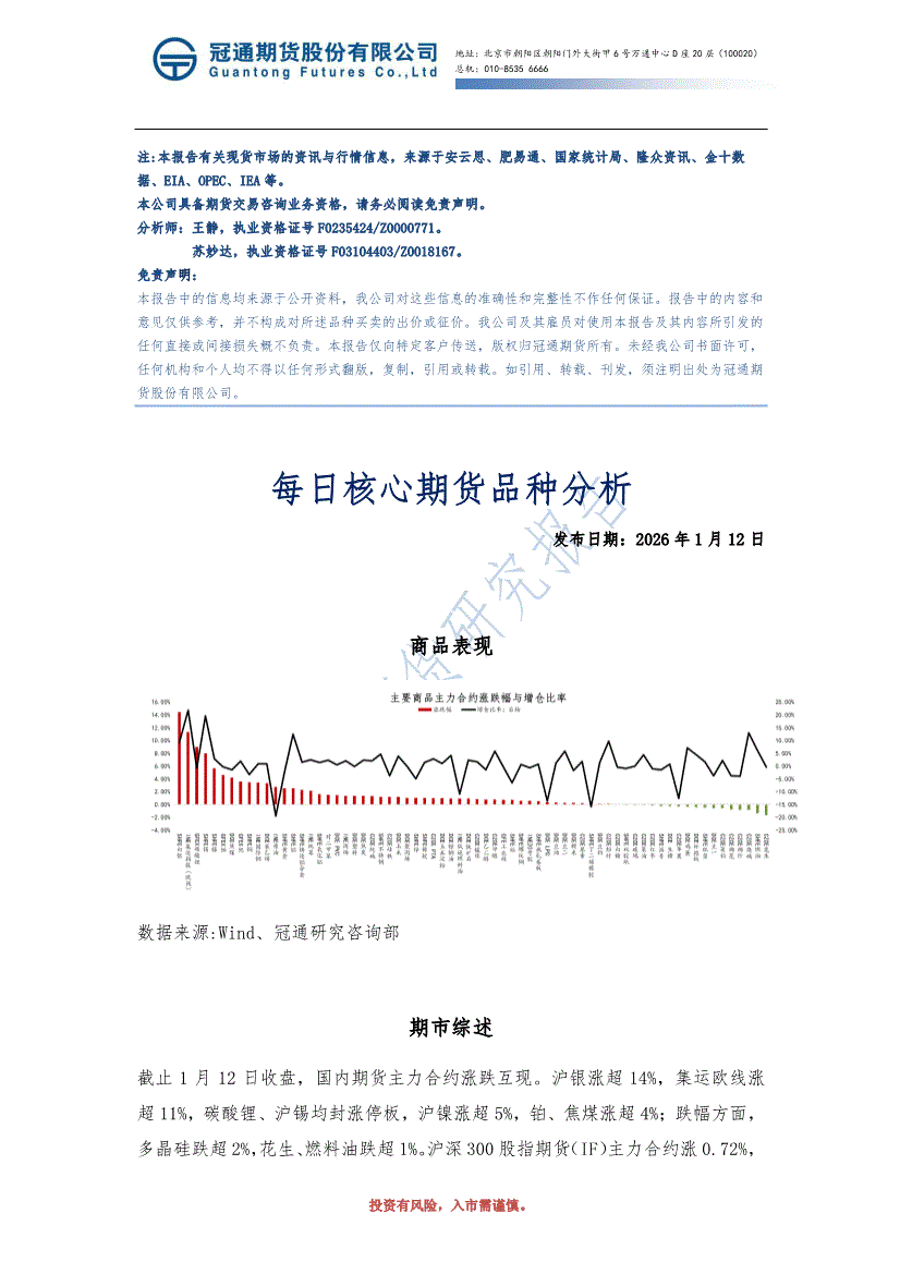 冠通期货-每日核心期货品种分析-260112