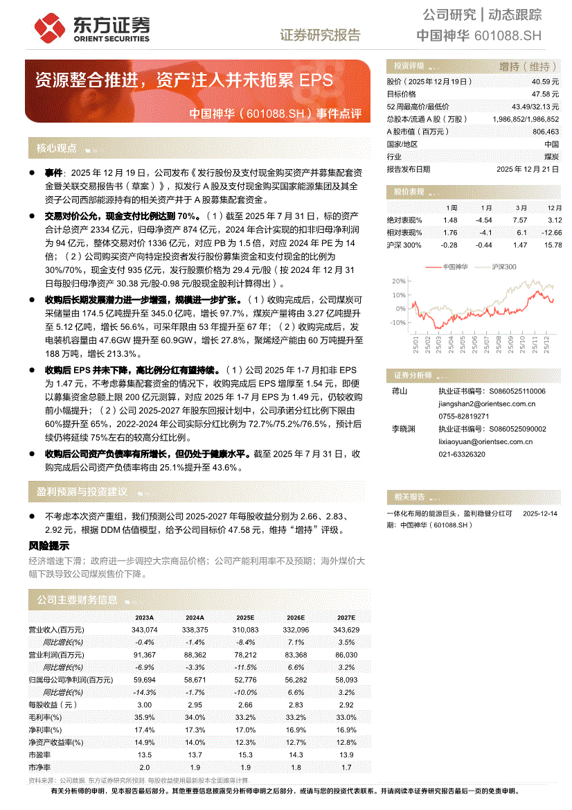 中国神华:东方证券-中国神华-601088-事件点评:资源整合推进,资产注入并未拖累EPS-251221