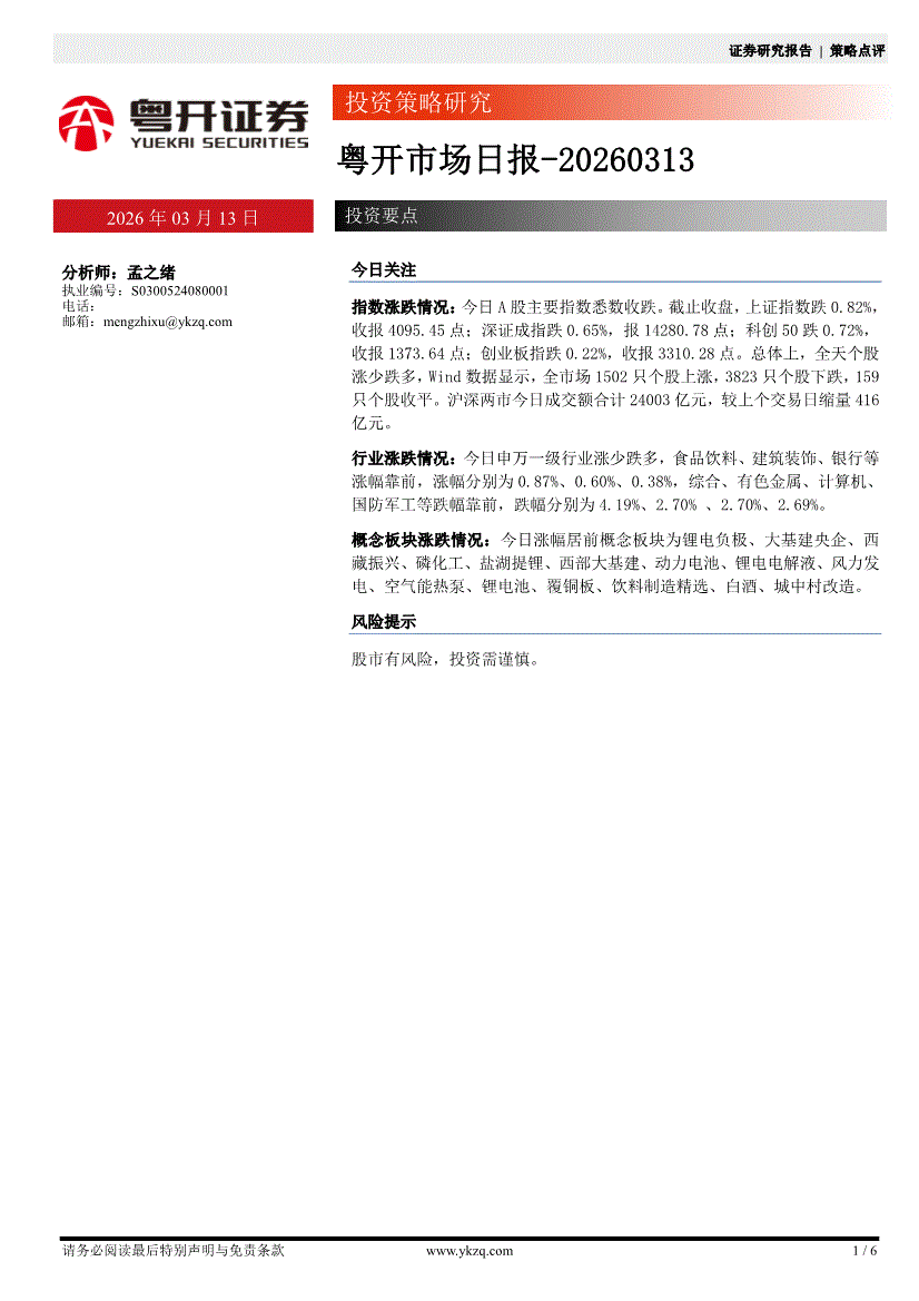 粤开证券-粤开市场日报-260313