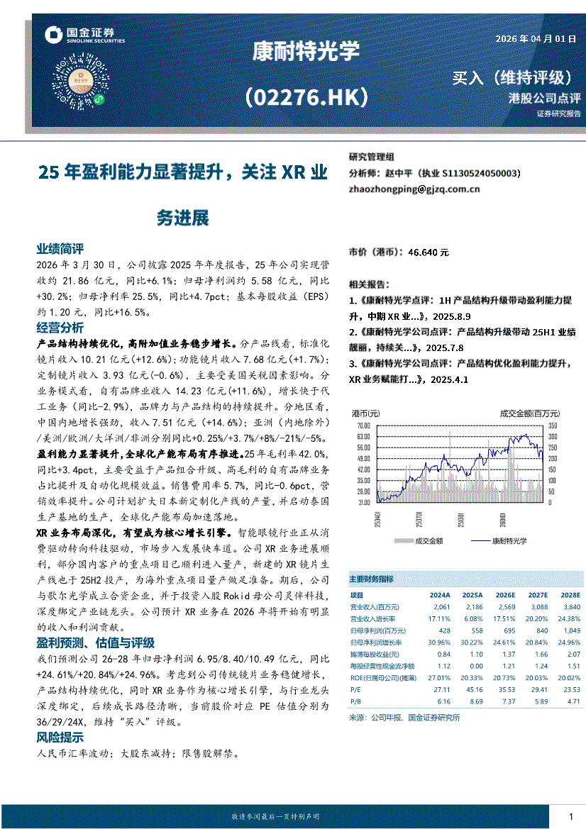 康耐特光学:国金证券-康耐特光学-2276.HK-25年盈利能力显著提升,关注XR业务进展-260401