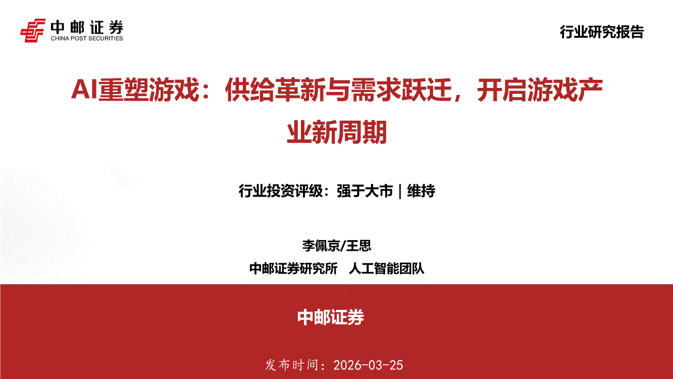 人工智能行业:中邮证券-人工智能行业AI重塑游戏:供给革新与需求跃迁,开启游戏产业新周期-260325