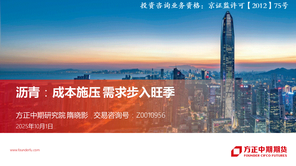 方正中期期货-沥青:成本施压,需求步入旺季-251001