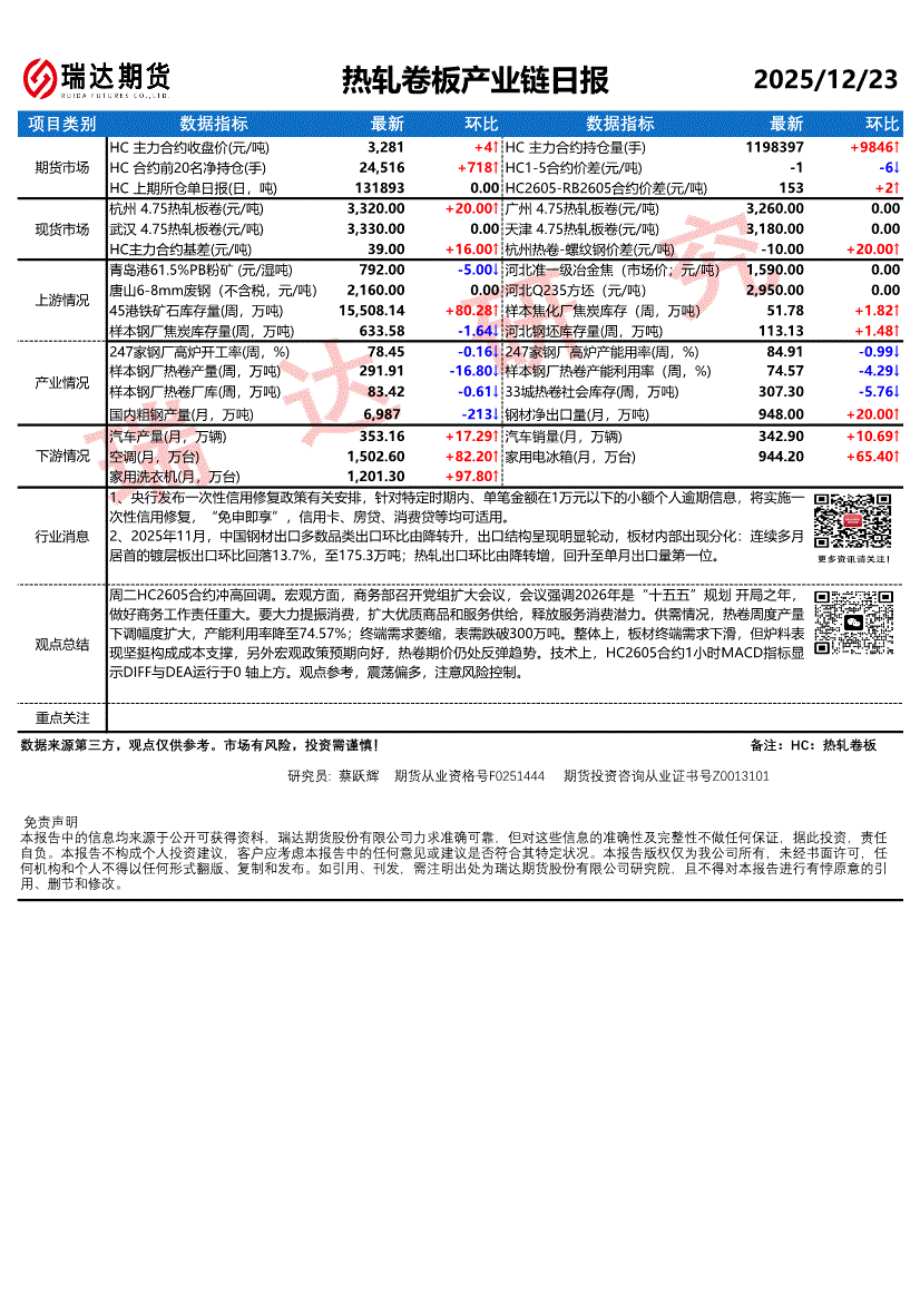 瑞达期货-螺纹钢市场周报:炉料反弹+宏观利好,螺纹期价止跌走高-251219