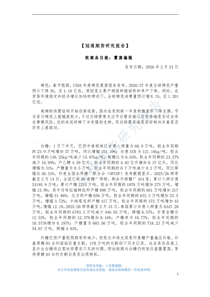 冠通期货-养殖产业链日报:近月宽松明显-260224