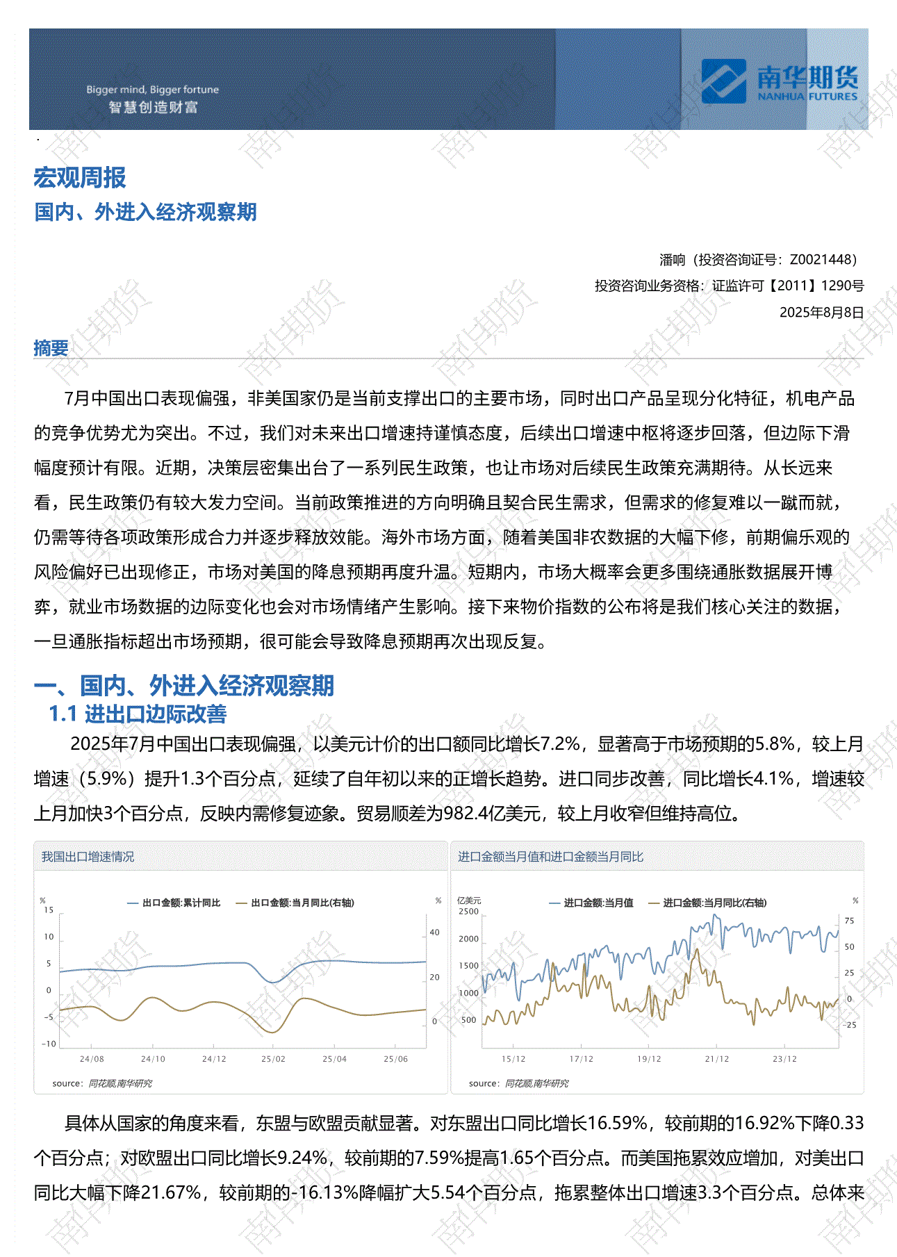 南华期货-宏观周报:国内、外进入经济观察期-250808
