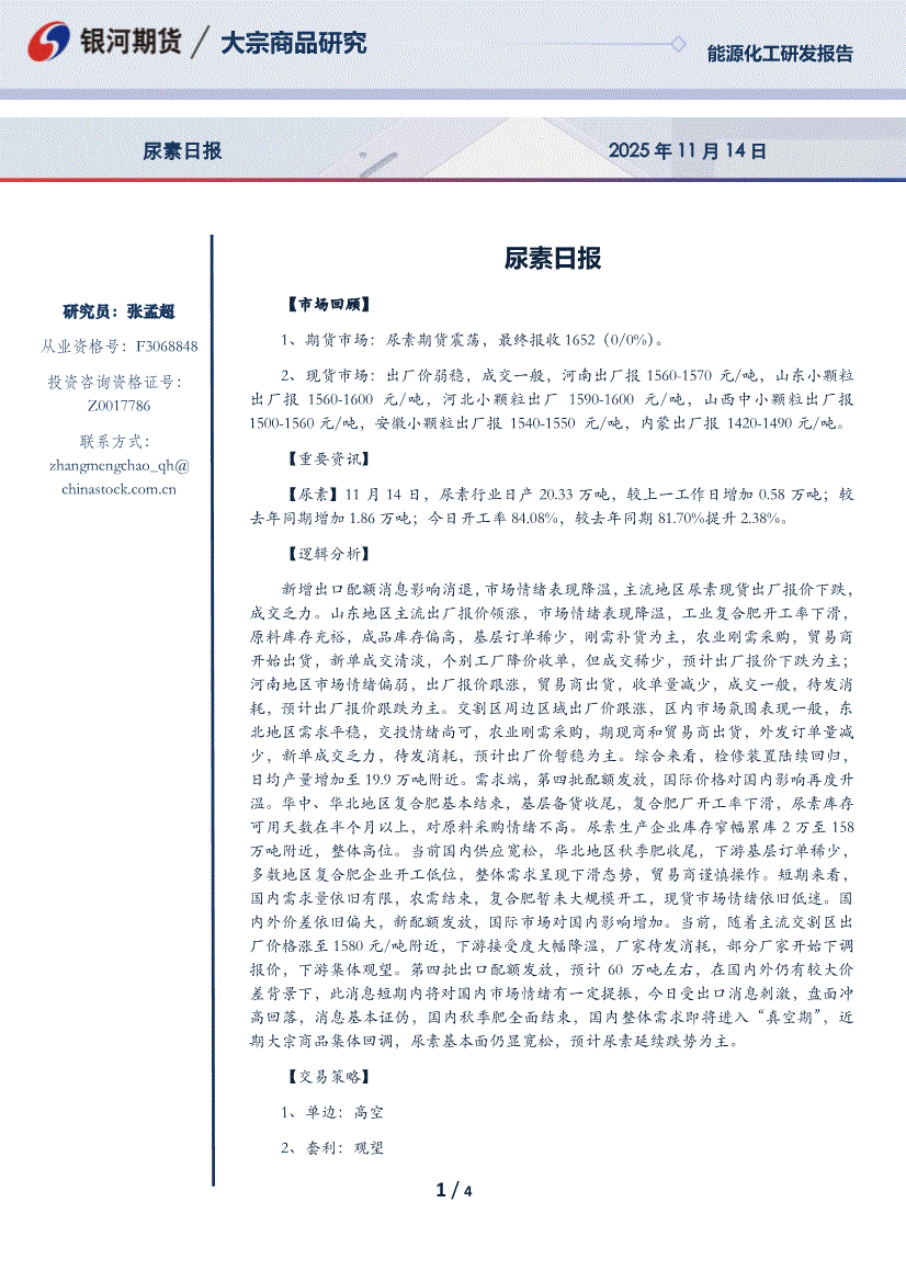 银河期货-下游逢低补货,尿素震荡为主-251121