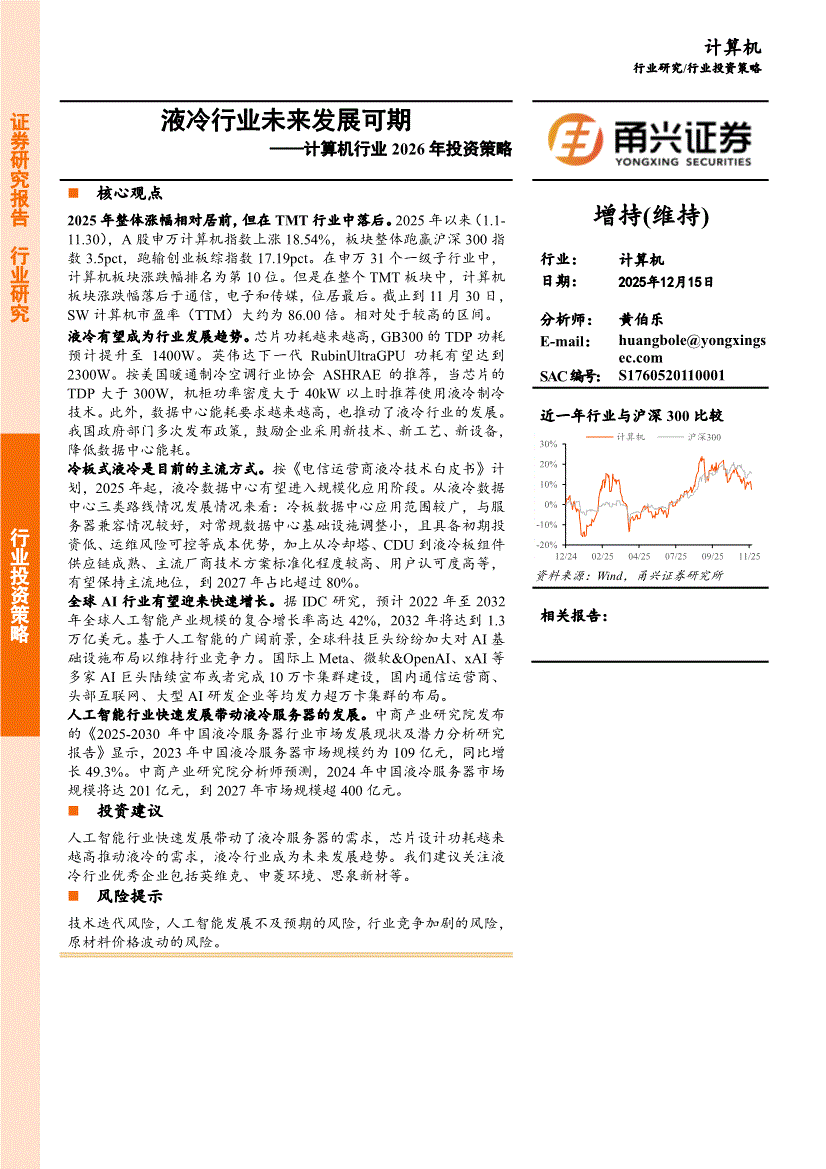计算机行业:甬兴证券-计算机行业2026年投资策略:液冷行业未来发展可期-251215