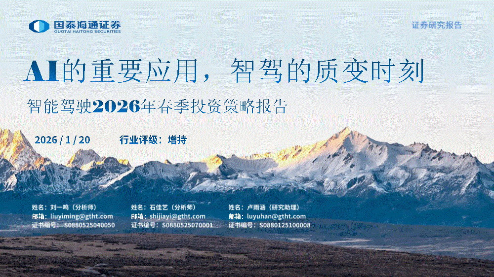 智能驾驶行业:国泰海通证券-智能驾驶行业2026年春季投资策略报告:AI的重要应用,智驾的质变时刻-260120