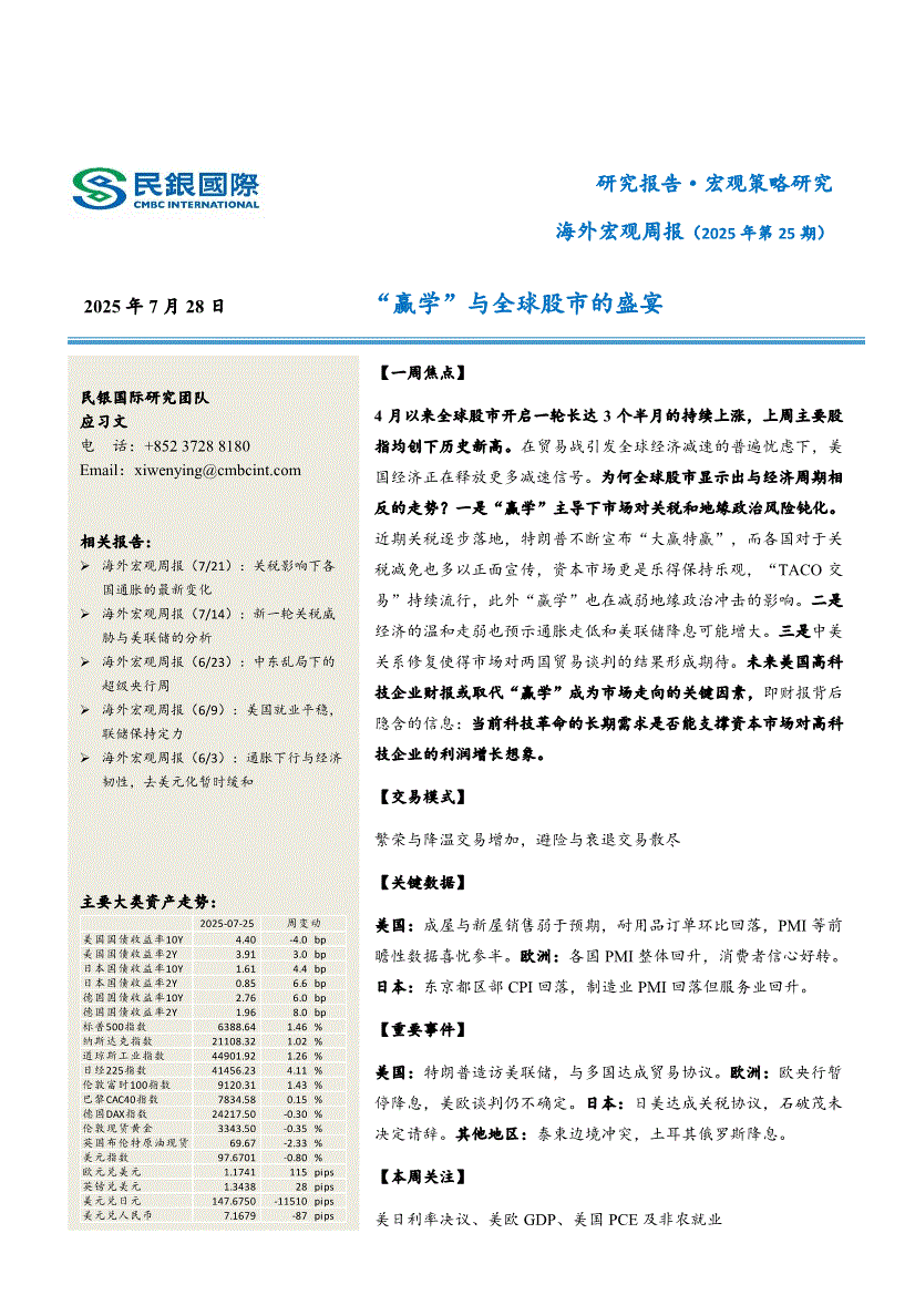 民银国际-海外宏观周报(2025年第25期):“赢学”与全球股市的盛宴-250728