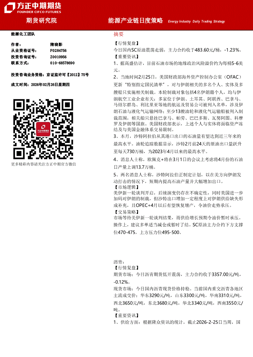 方正中期期货-能源产业链日度策略-260226
