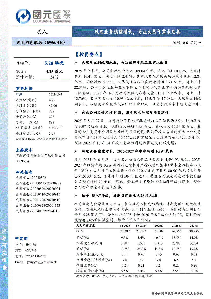 新天绿色能源:国元国际-新天绿色能源-0956.HK-风电业务稳健增长,关注天然气需求改善-251006