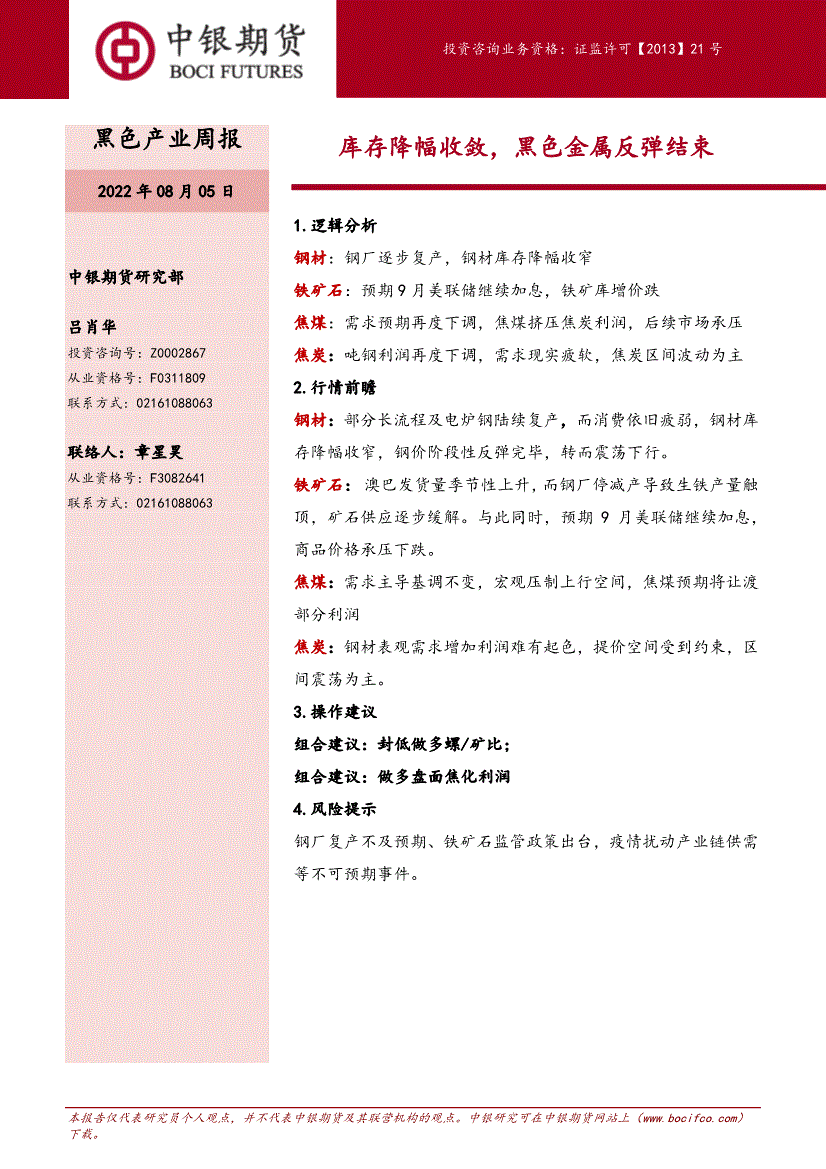 中银国际期货-黑色产业周报:库存降幅收敛,黑色金属反弹结束-220805