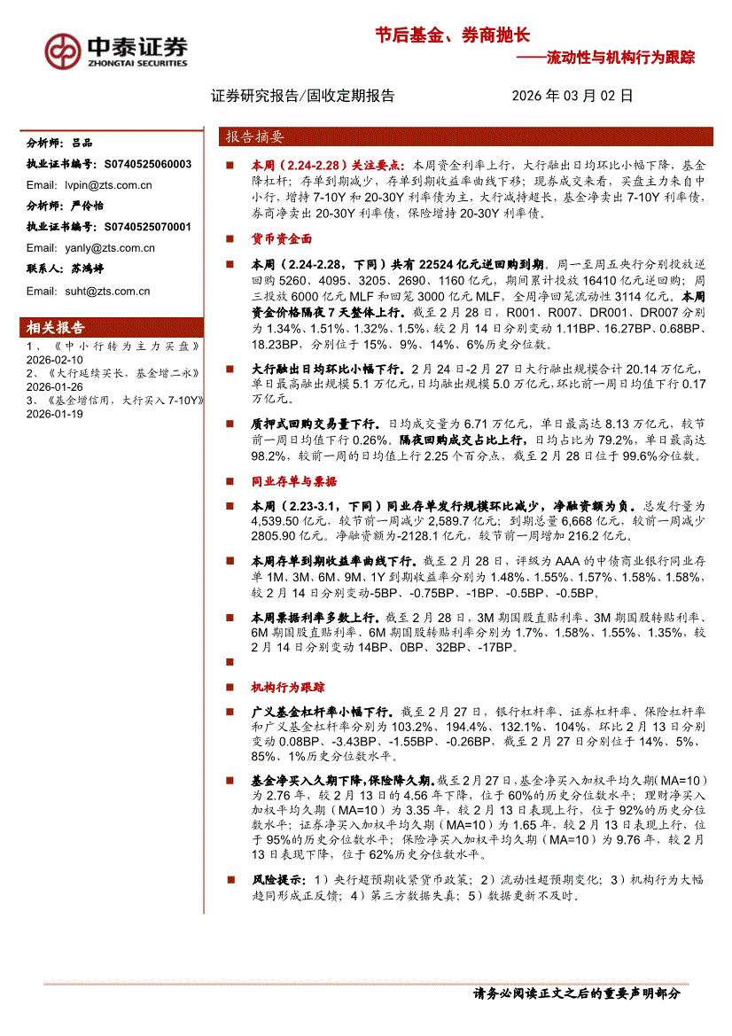 中泰证券-流动性与机构行为跟踪:节后基金、券商抛长-260302
