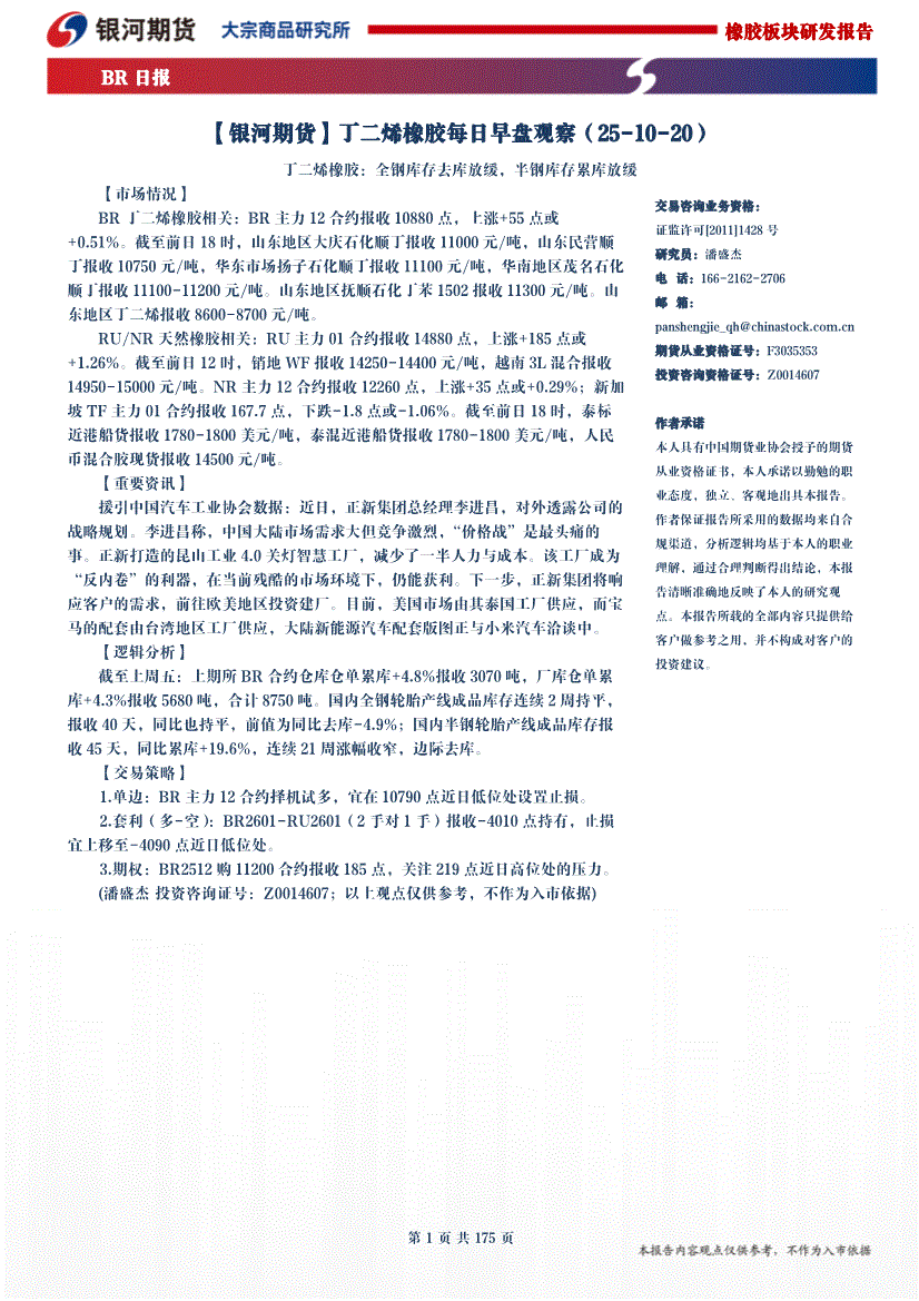 银河期货-丁二烯橡胶每日早盘观察-251020