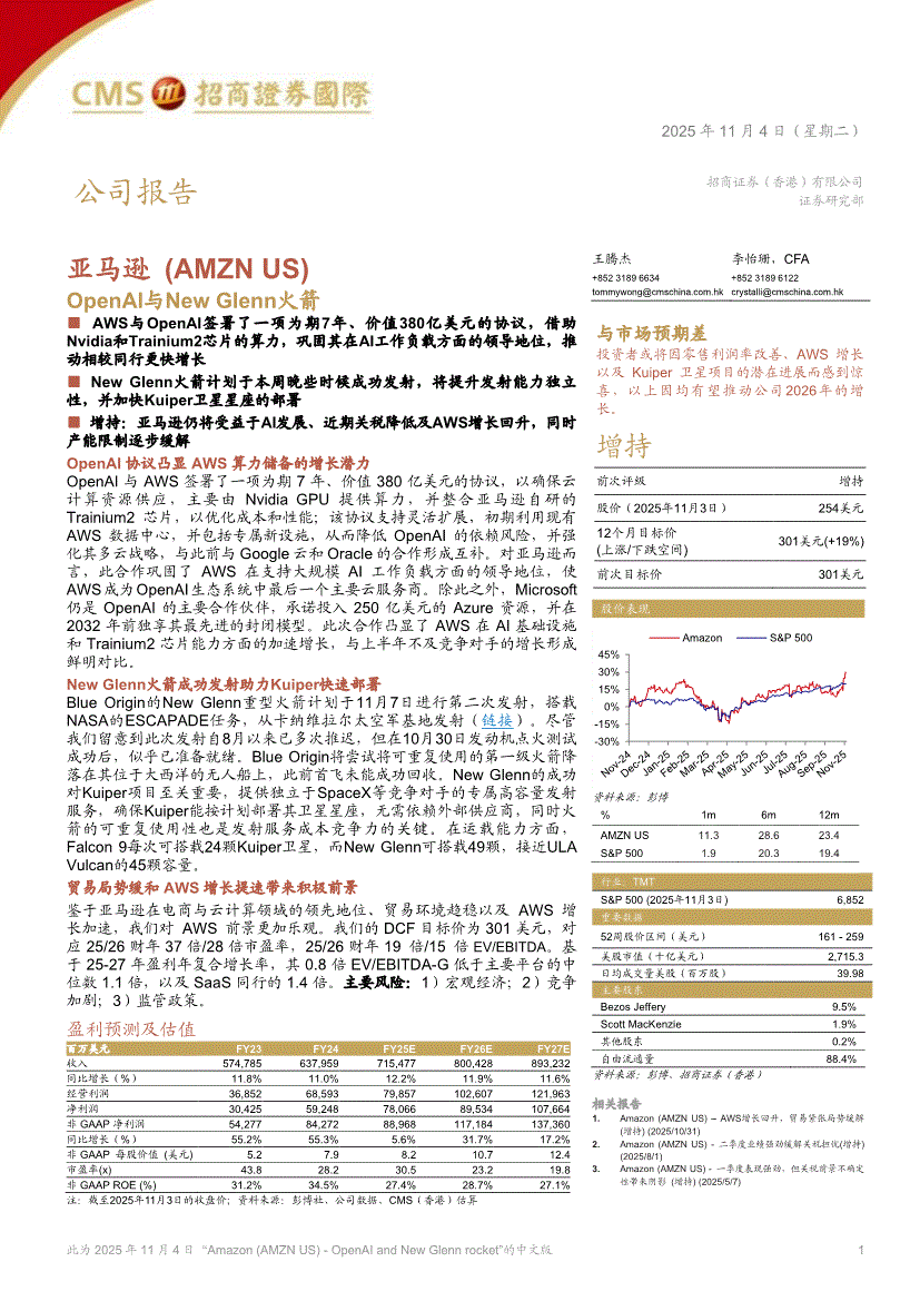 亚马逊:招商证券(香港)-亚马逊-AMZN.US-OpenAI与New Glenn火箭-251104