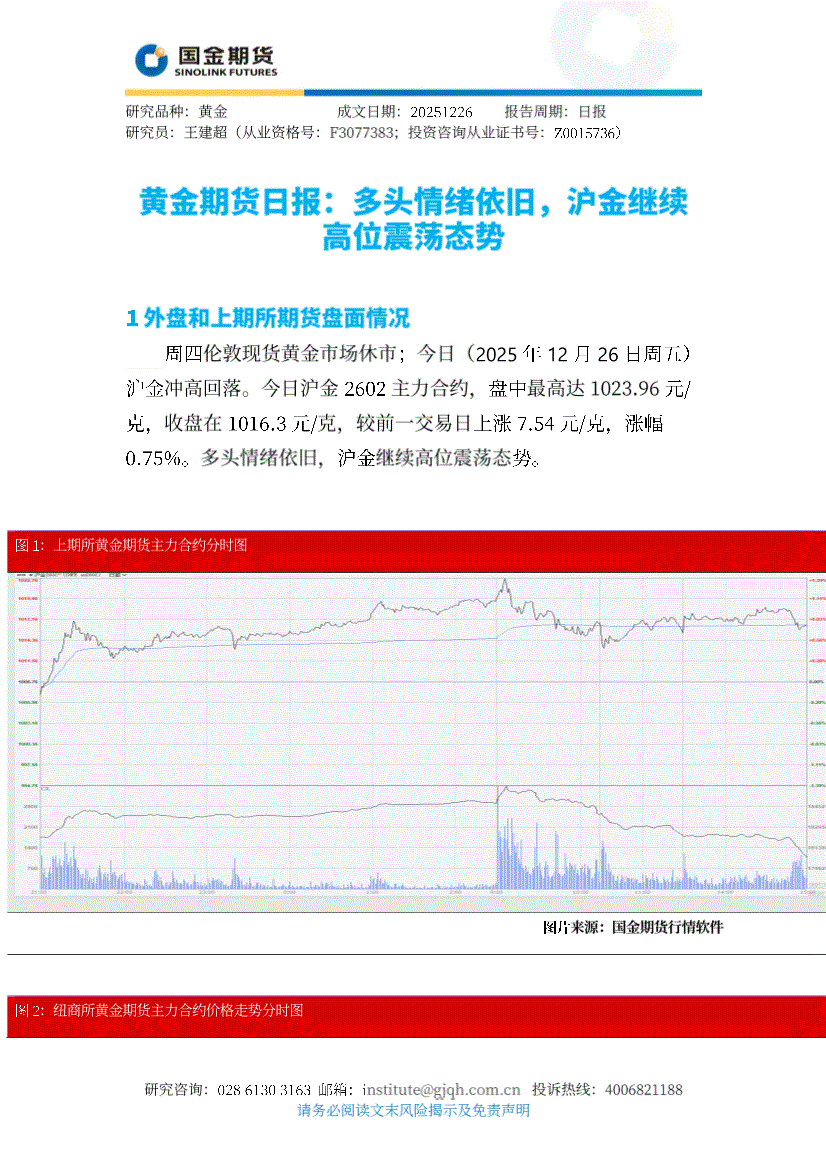 国金期货-黄金期货日报:多头情绪依旧,沪金继续高位震荡态势-251226