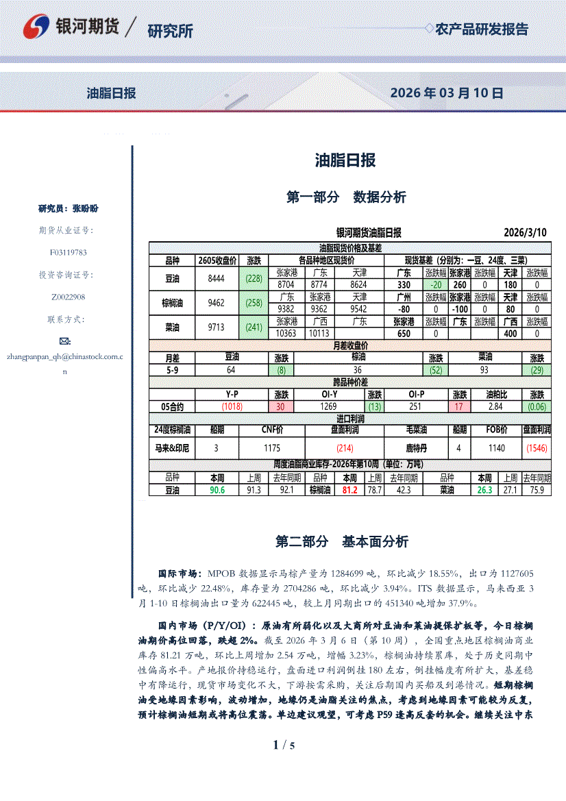 银河期货-油脂3月报:油脂逐渐回归基本面,短期油脂或震荡偏弱运行-260227