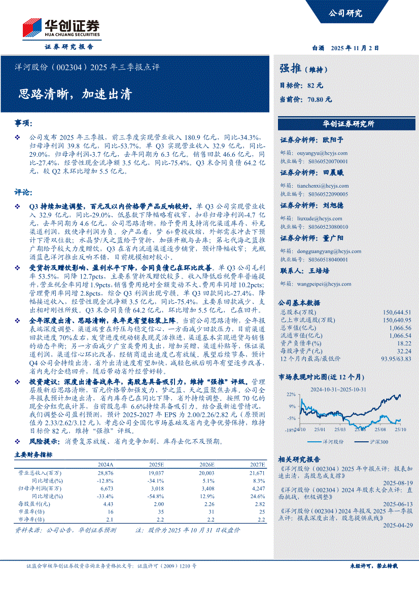 洋河股份:华创证券-洋河股份-002304-2025年三季报点评:思路清晰,加速出清-251102