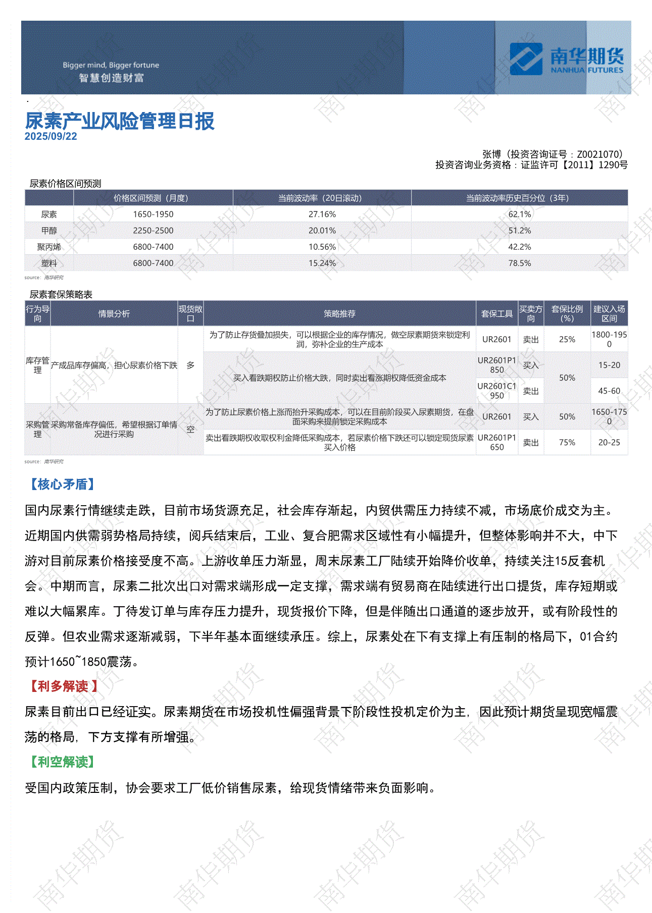 南华期货-尿素产业链数据周报:观点,关注15反套-250831