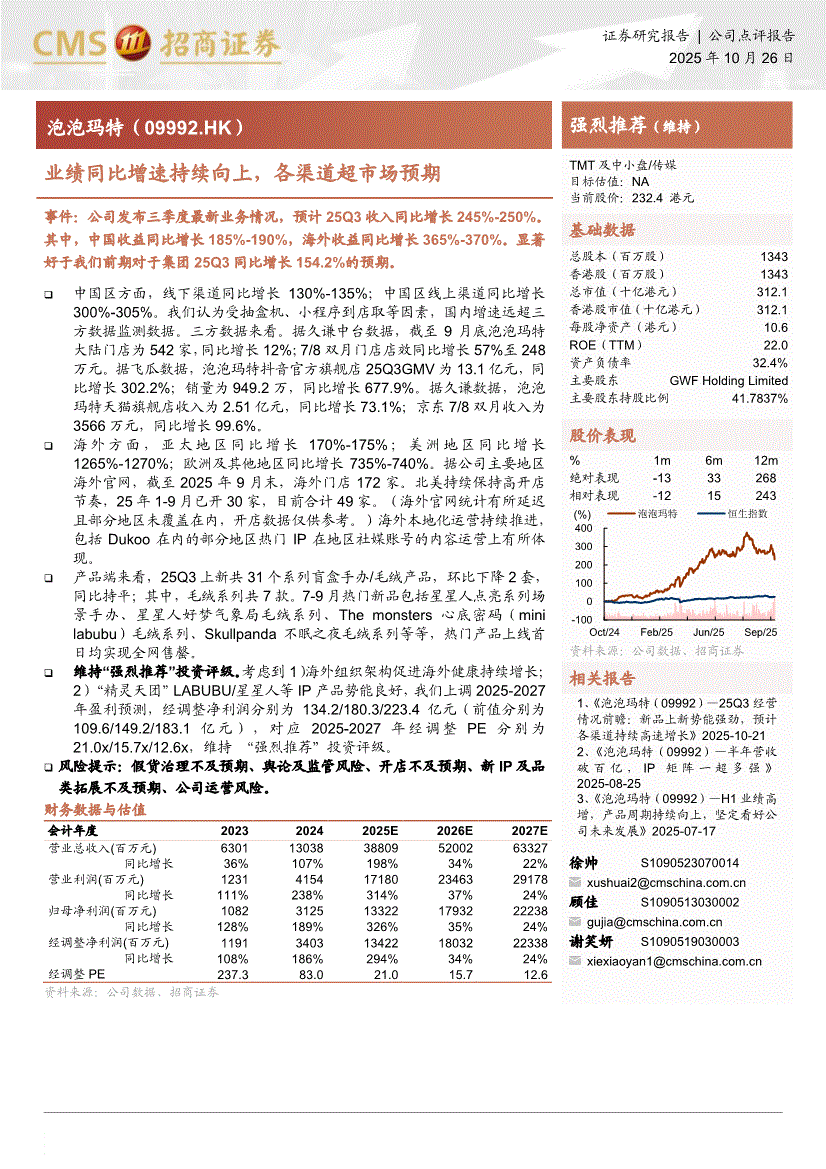 泡泡玛特:招商证券-泡泡玛特-9992.HK-业绩同比增速持续向上,各渠道超市场预期-251026