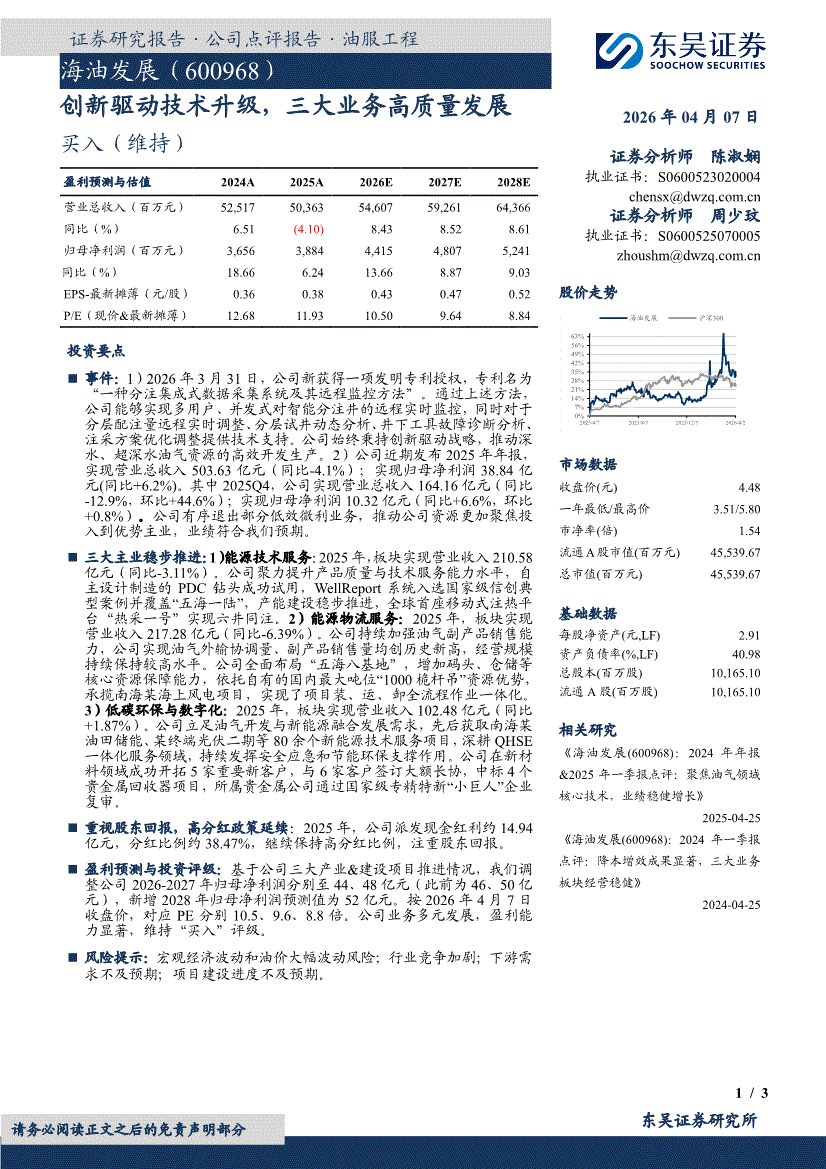 海油发展:东吴证券-海油发展-600968-创新驱动技术升级,三大业务高质量发展-260407