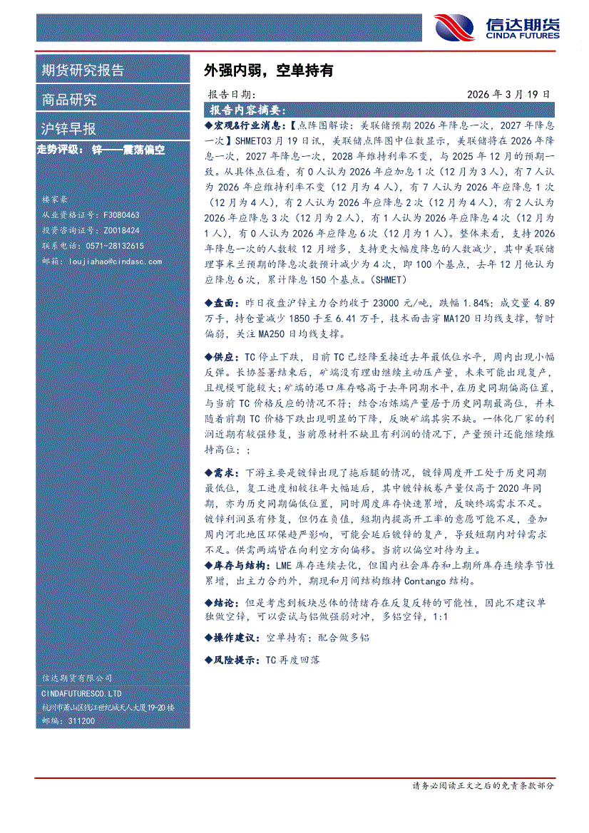 信达期货-沪锌早报:外强内弱,空单持有-260319