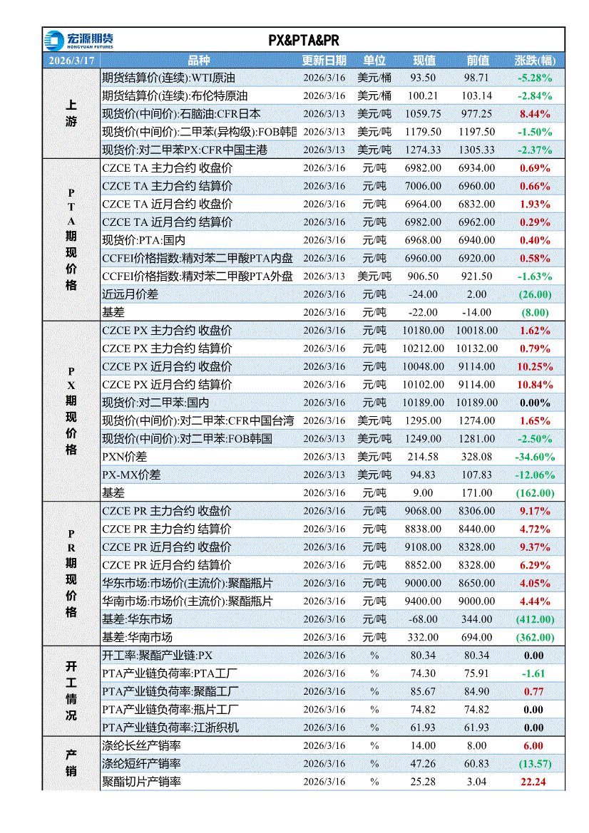 宏源期货-PX&PTA&PR早评-260317