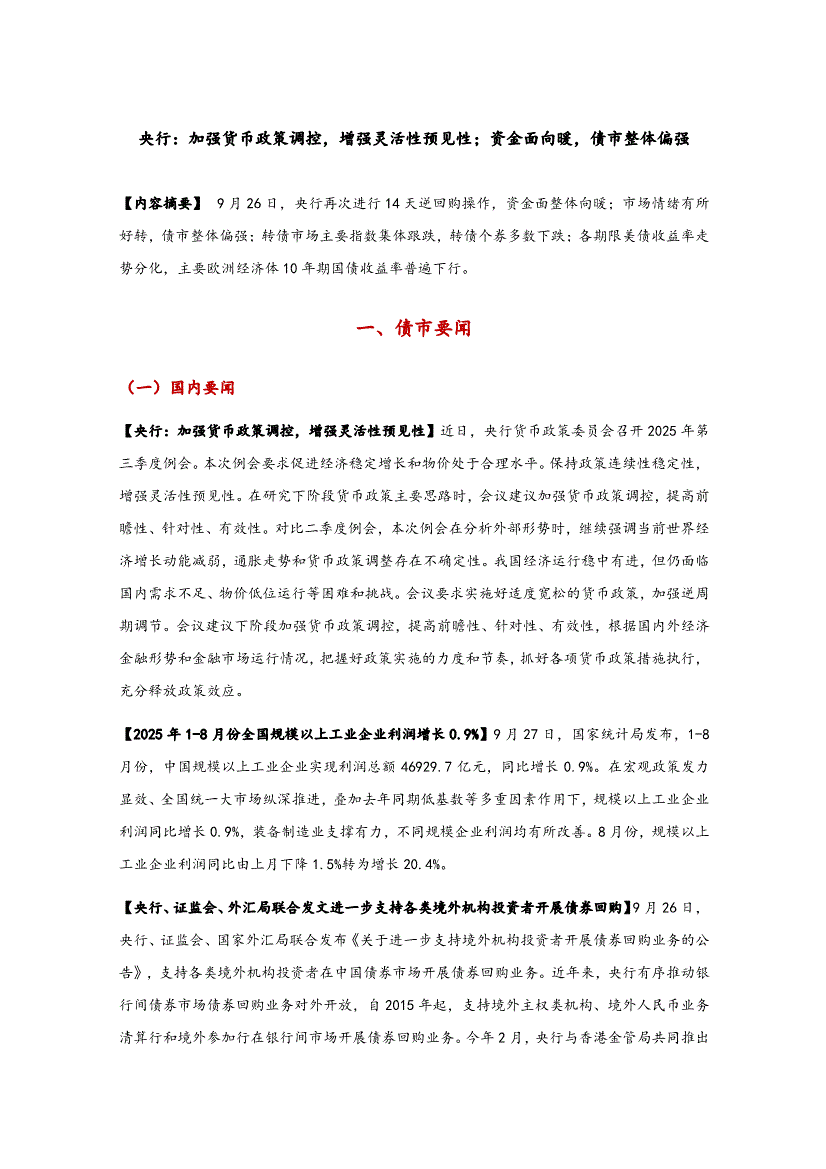东方金诚-央行:加强货币政策调控,增强灵活性预见性;资金面向暖,债市整体偏强-251015