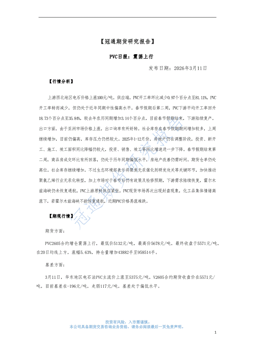 冠通期货-PVC日报:震荡上行-260311