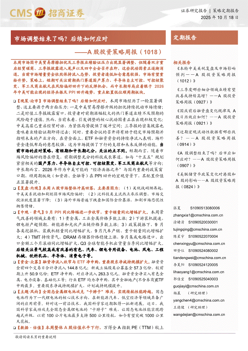 招商证券-A股投资策略周报:市场调整结束了吗?后续如何应对-251018