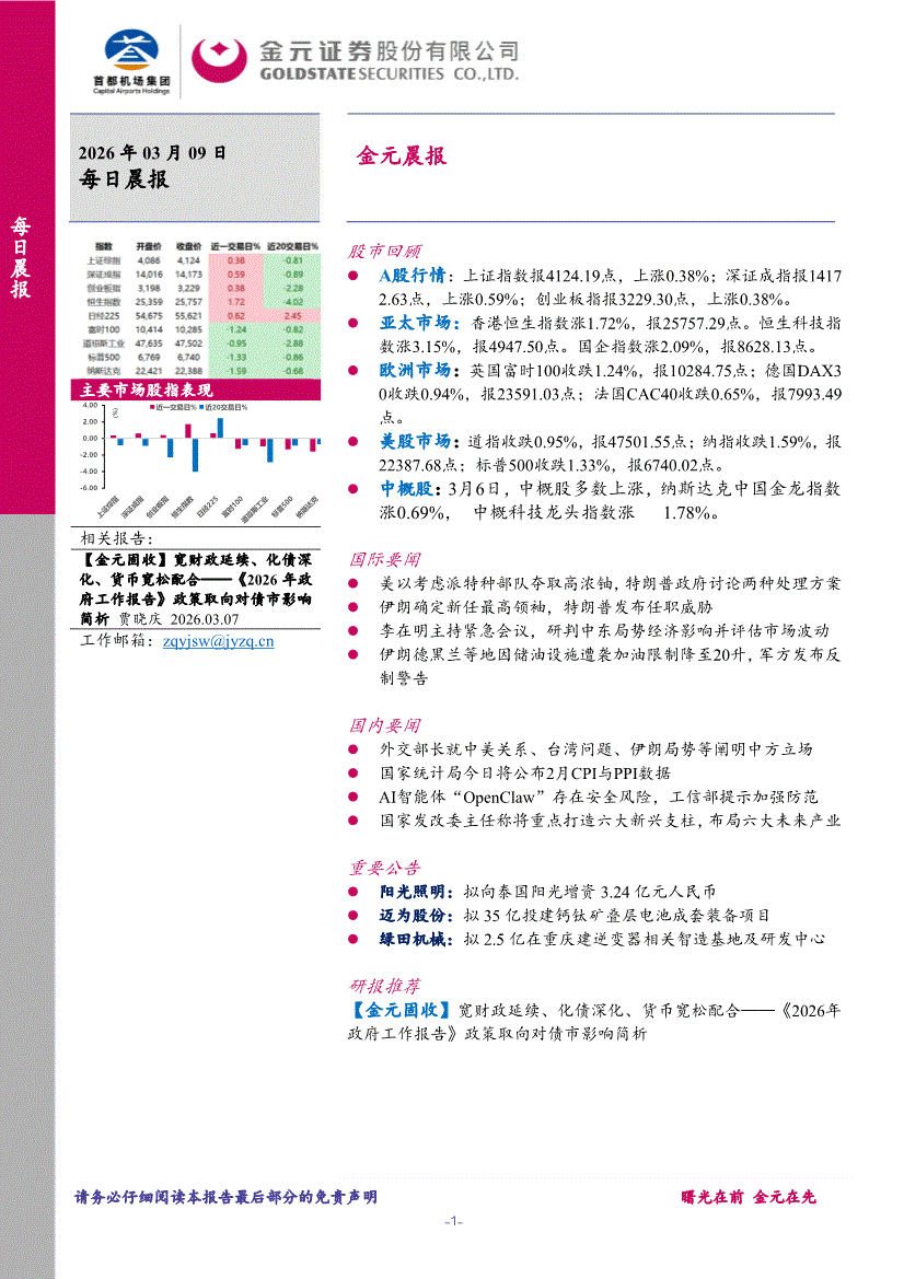 金元证券-每日晨报-260309