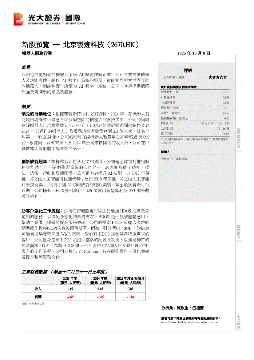 光大证券(国际)-新股預覽─北京雲迹科技(2670.HK)-251008